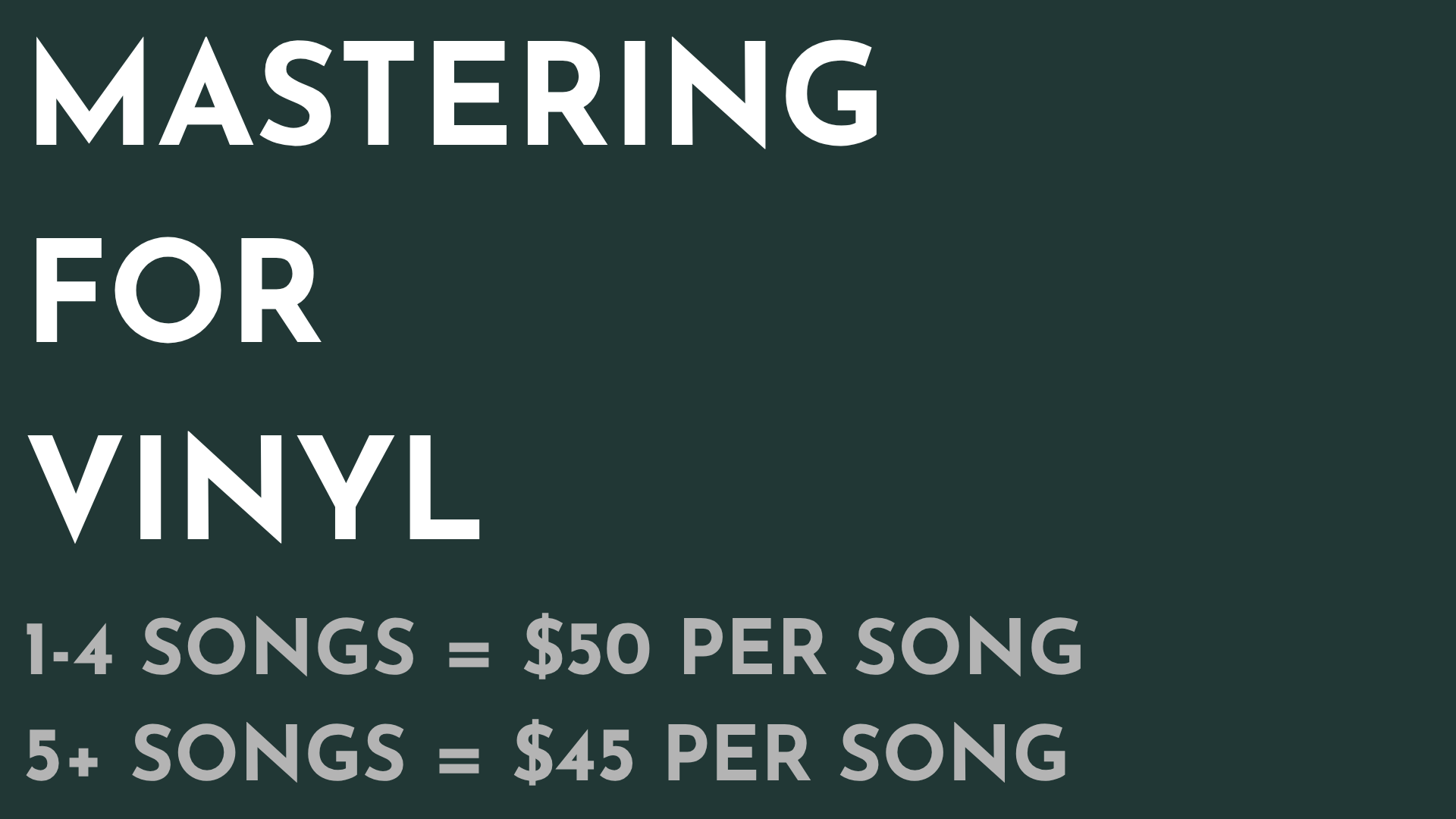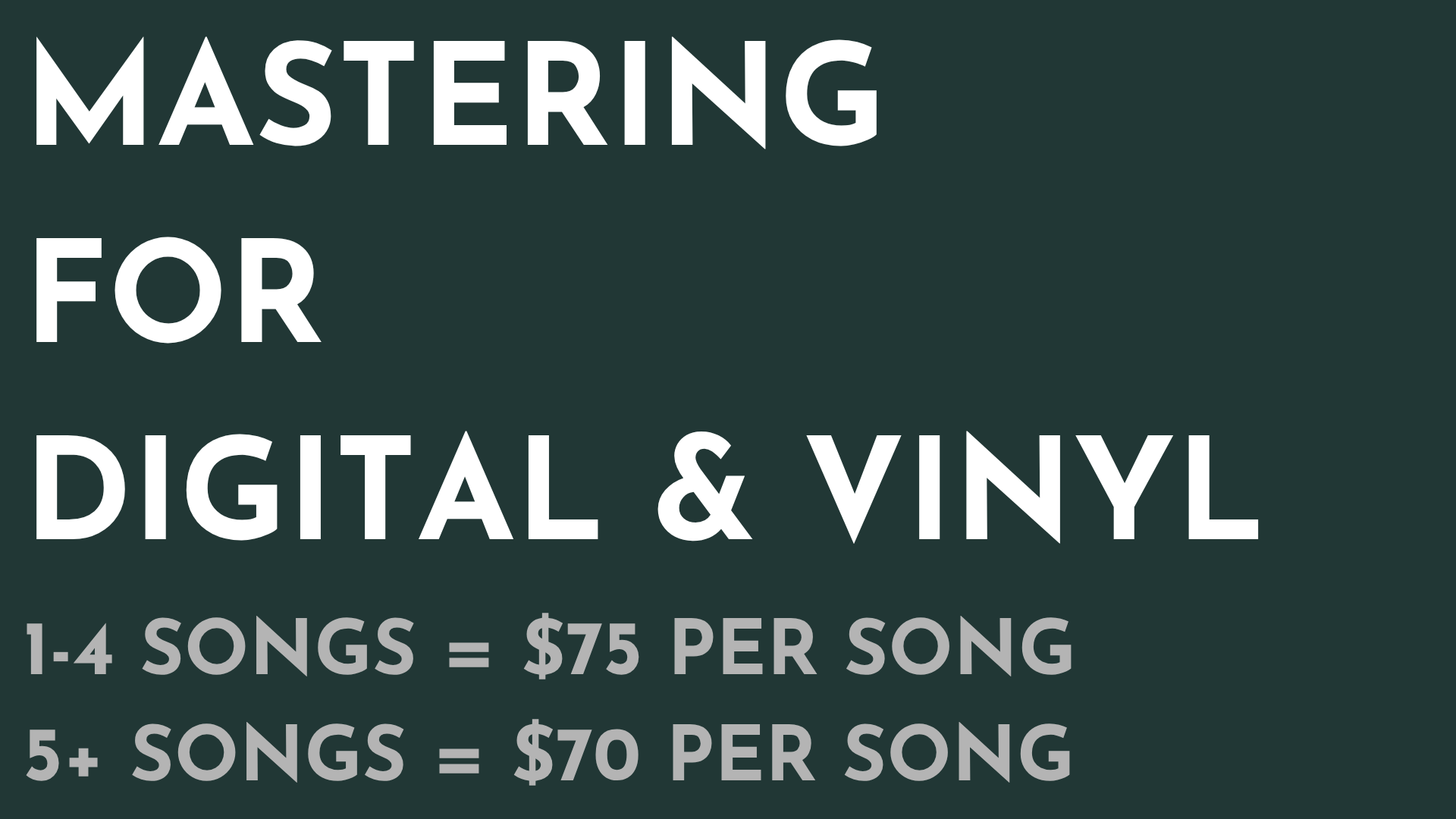 *If you’d like to master for both digital and vinyl, simply add $10 per song to the mastering price.